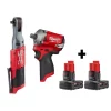 - Includes: one M12 FUEL 3/8 in. ratchet, one M12 Bluetooth/AM/FM jobsite radio/charger, and two M12 3.0 batteries
