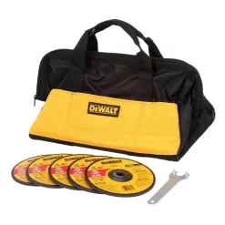 - Includes: 7 in. heavy duty angle grinder, 5 grinding wheels, wrench, backing flange, clamp nut, adjustable guard, 2-position side handle and carry bag