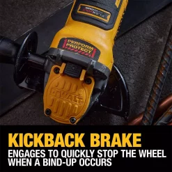 - Kickback Brake engages with maximum force to quickly stop the wheel and shut off the grinder when a bind-up occurs