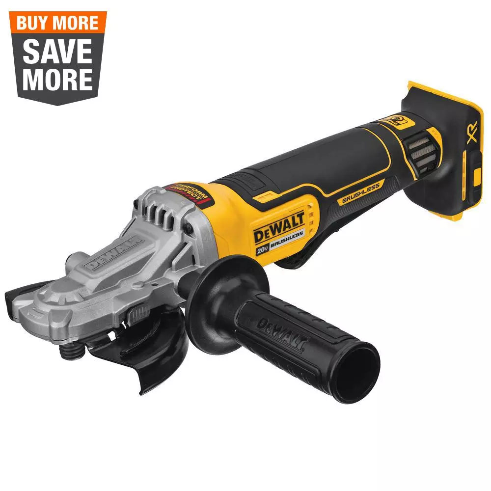 This small angle grinder features a brushless motor for an extended motor life and no need to change out old brushes. The grinders wheel stops within 2-seconds or less. And, its Kickback Break engages maximum force to stop the wheel when there is a pinch, stall or bind-up to reduce kickback and will shut off for further protection.