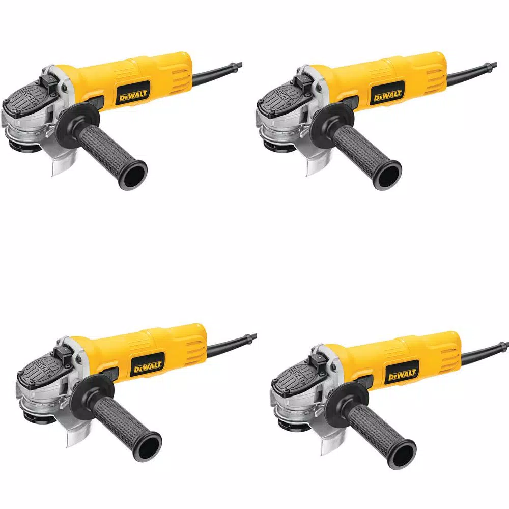 Squeeze into tight spaces to singlehandedly complete tasks with this shallow-profile compact grinder from DEWALT. When 2 hands are better, grip the (removable) side handle to apply more pressure and stability. A simple on/off switch engages the 7 Amp motor on this small-angle grinder, delivering a robust 12,000 RPM. Attach, rotate and secure the One-Touch guard into one of several positions without any tools. Easily affix or remove 4-1/2 in. discs onto the flange with included wrench.