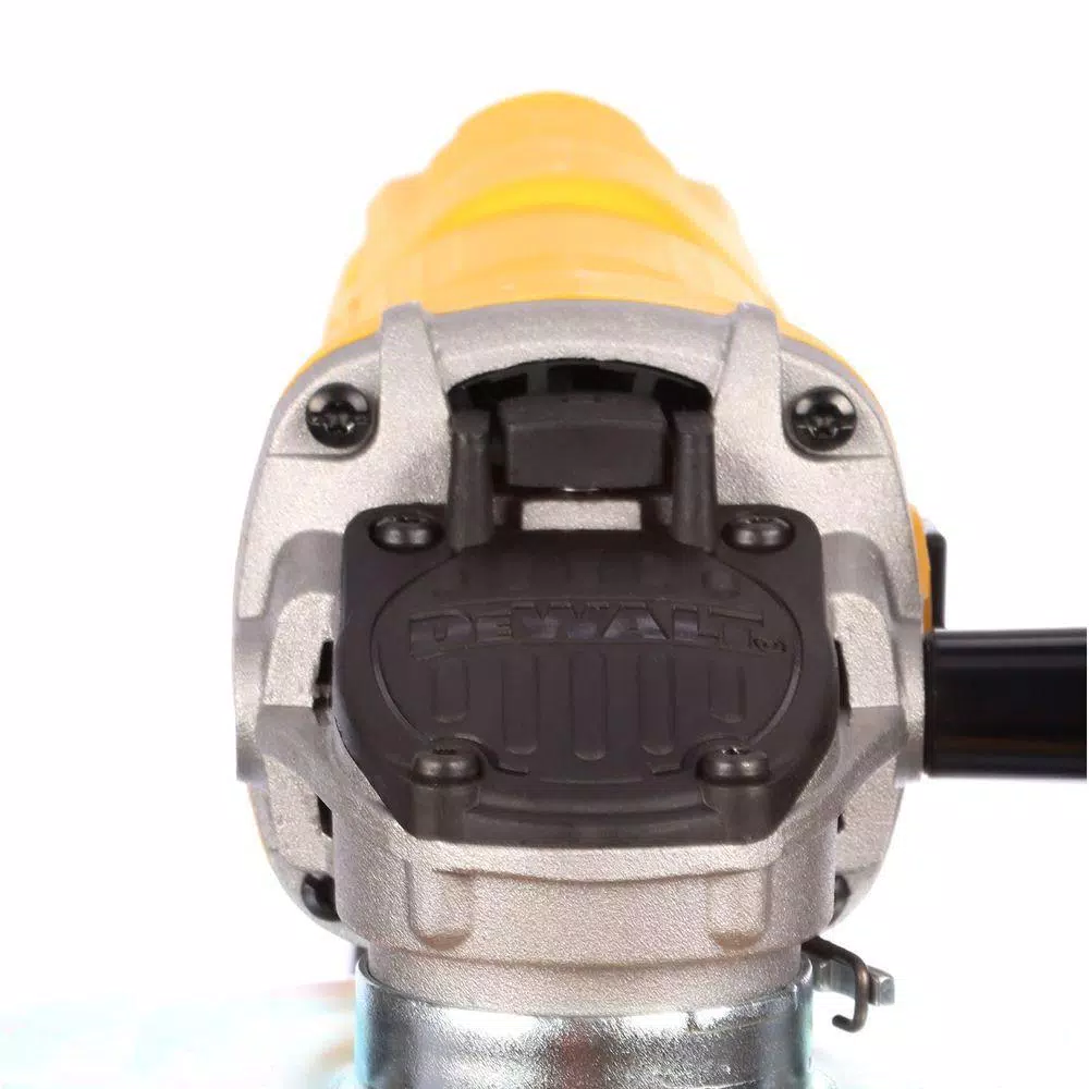 Squeeze into tight spaces to singlehandedly complete tasks with this shallow-profile compact grinder from DEWALT. When 2 hands are better, grip the (removable) side handle to apply more pressure and stability. A simple on/off switch engages the 7 Amp motor on this small-angle grinder, delivering a robust 12,000 RPM. Attach, rotate and secure the One-Touch guard into one of several positions without any tools. Easily affix or remove 4-1/2 in. discs onto the flange with included wrench.