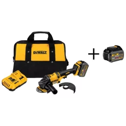 - Includes CG414 Grinder, (2) DCB606 FLEXVOLT Lithium-Ion Battery, Fast Charger, Side Handle, 4-1/2 in. (115mm) Type 27 Wheel, 4-1/2 in. (115mm) Type 27 Guard, 6 in. (150mm) Type 27 Guard, Wrench, Flanges, and Kitbag
