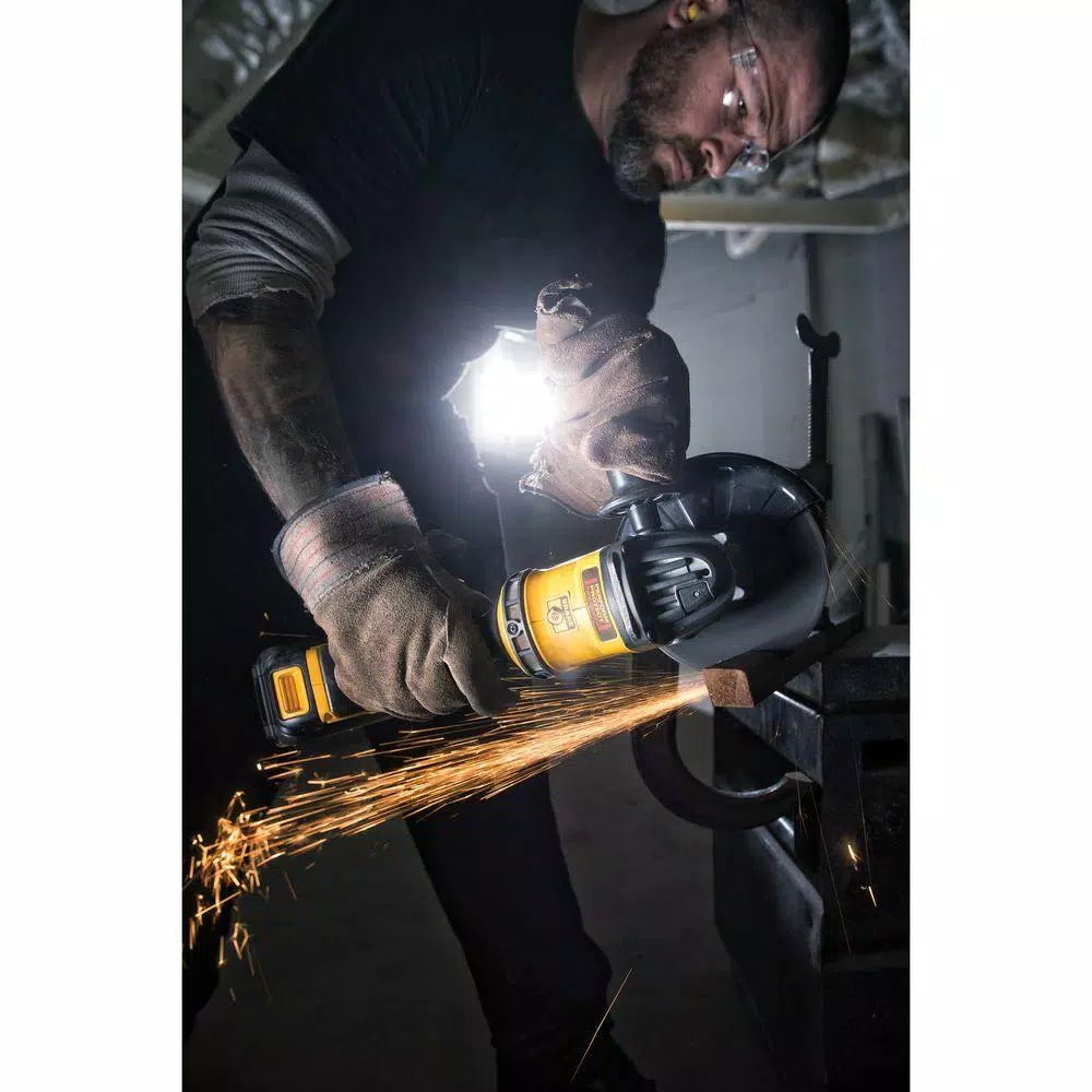 The DCG414T2 4-1/2 in. – 6 in. (115 mm – 150 mm) Grinder with Kickback Brake is maximized for power and durability. It delivers 13 Amp power as compared to the D28144N with the portability and convenience of cordless through DEWALT’s revolutionary FlexVolt technology. The DCG414T2 comes with 2 FlexVolt Batteries, Fast Charger and Kit Bag.
