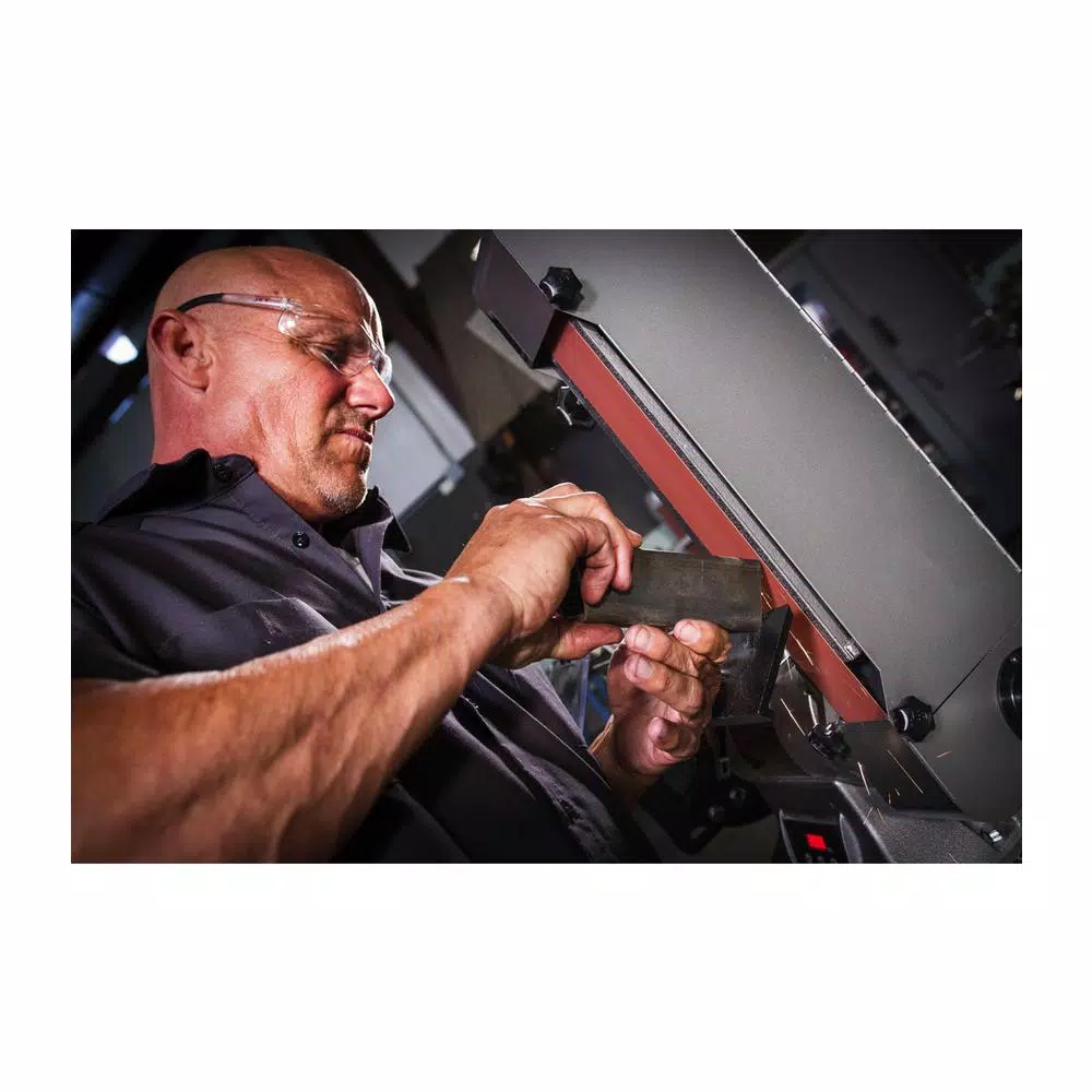 The IBGB-248 Combination 8 in. Grinder and Belt Sander is engineered with industrial strength construction, sealed bearings, and a powerful enclosed 1 horsepower motor meant for heavy usage. The combination grinder and belt sander include safety on/off switches, a removable key, and OSHA compliant large adjustable protective shielding. It is also CSA/US certified.