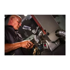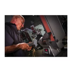 The Variable Speed IBGB-248VS Combination 8 in. Grinder and Belt Sander is engineered with industrial strength construction, sealed bearings and a powerful enclosed 1 horsepower motor meant for heavy usage. The Variable Speed IMBGB-248VS includes a digital readout that allows operators to accurately monitor the RPMS and SFPM. The electric motor brake quickly stops the wheels from 3,600 RPMs to 0 in less than 20-seconds.