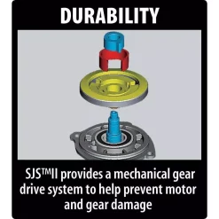 - SJS II provides a mechanical gear drive system to help prevent motor and gear damage by dampening the force on the gear when the wheel is forced to stop