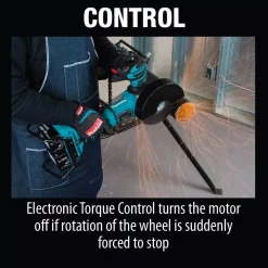 - Electric brake stops the grinding or cut-off wheel in 2 seconds or less for maximum productivity