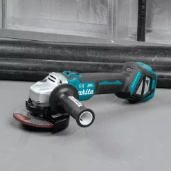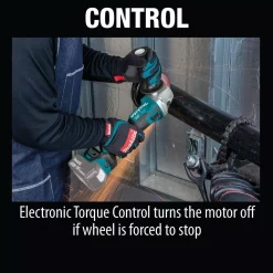 Makita delivers corded grinding performance without the cord with the 18-Volt LXT Lithium-Ion Brushless 4-1/2 in. / 5 Cut-Off/Angle Grinder with Electric Brake (tool only, battery and charger sold separately). It’s powered by a Makita brushless motor for longer run time, increased power and speed, and longer tool life. For the most demanding applications, Makita exclusive Automatic Speed Change technology automatically adjusts speed and torque during operation for optimal performance. The XAG16Z is ideal for grinding and cutting a wide range of materials including tile, concrete, pipe, conduit, and more. Additional features include an electric brake that stops the grinding or cut-off wheel in 2 seconds or less, and Electronic Torque Control that turns the motor off if rotation speed suddenly slows or the wheel is forced to a stop. The variable speed control dial allows manual RPM adjustment (3,000-8,500), allowing the user to match the speed to the application. Its part of Makita expanding 18-Volt Lithium-Ion system, the worlds largest cordless tool system powered by 18-Volt Lithium-Ion slide-style batteries. Makita 18-Volt Lithium-Ion batteries have the fastest charge times in their categories, so they spend more time working and less time sitting on the charger.