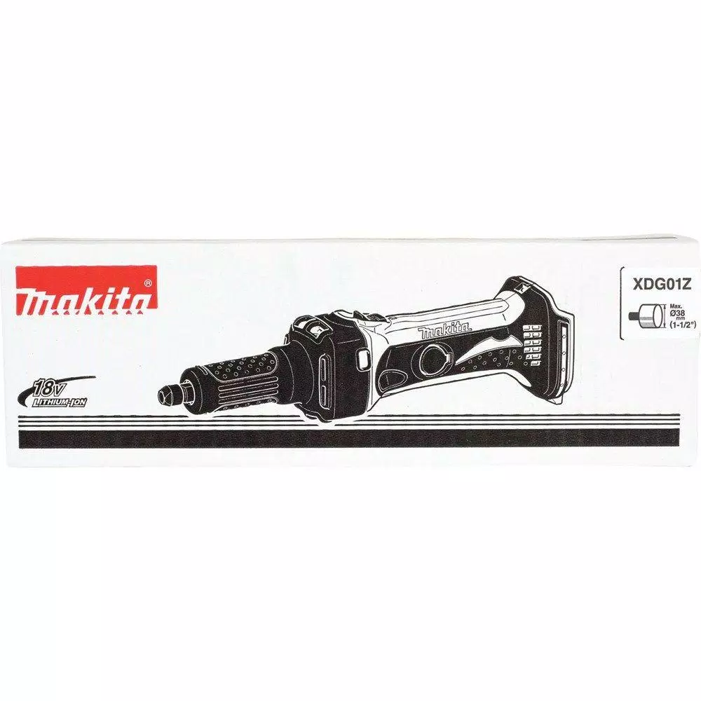 The Makita 18-Volt LXT Lithium-Ion Cordless 1/4 in. Die Grinder (model XDG01Z, tool-only) delivers speed and portability in a compact size. It is engineered for a range of metalworking surface-prep applications including grinding, smoothing and cutting. Itโs part of Makita expanding 18-Volt Lithium-Ion series, the worldโs largest cordless tool line-up powered by 18-Volt Lithium-Ion slide-style battery. Makita 18-Volt Lithium-Ion batteries have the fastest charge times in their categories, so they spend more time working and less time sitting on the charger. This promotion also includes a bonus BL1850B 18V LXT Lithium-Ion 5.0Ah Battery.