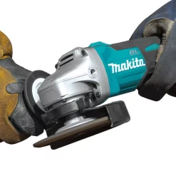 Makita delivers corded grinding performance without the cord with the 18-Volt LXT Lithium-Ion Brushless 4-1/2 in./5 in. Cut-Off/Angle Grinder (tool only, battery and charger sold separately). It’s powered by a Makita brushless motor for longer run time, increased power and speed and longer tool life. For the most demanding applications, Makita’s exclusive Automatic Speed Change Technology automatically adjusts speed and torque during operation for optimal performance. The XAG04Z is ideal for grinding, cutting and sanding a wide range of materials including tile, concrete, pipe, conduit and more. Its part of Makita’s expanding 18-Volt Lithium-Ion system, the world’s largest cordless tool system powered by 18-Volt Lithium-Ion slide-style batteries. Makita 18-Volt Lithium-Ion batteries have the fastest charge times in their categories, so they spend more time working and less time sitting on the charger. For improved tool performance and extended battery life, Makita created Star Protection Computer Controls. Star Protection is communication technology that allows the Star Protection-equipped tool and battery to exchange data in real time and monitor conditions during use to protect against overloading, over-discharging and overheating. For increased versatility, the tool can also be powered by Makita 18-Volt LXT and Compact Lithium-Ion batteries with the star symbol on the battery indicating Star Protection inside.