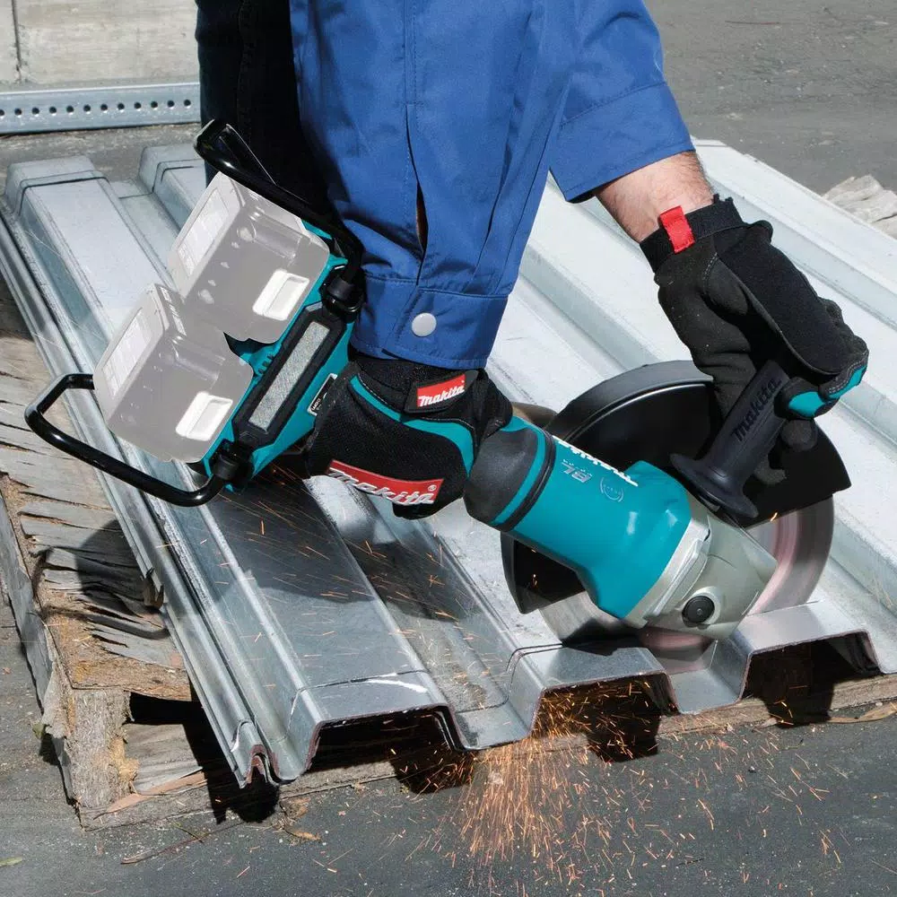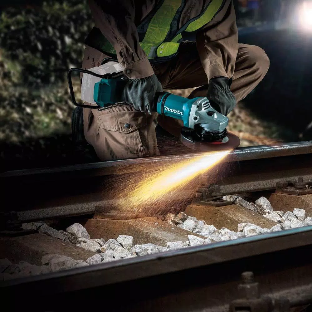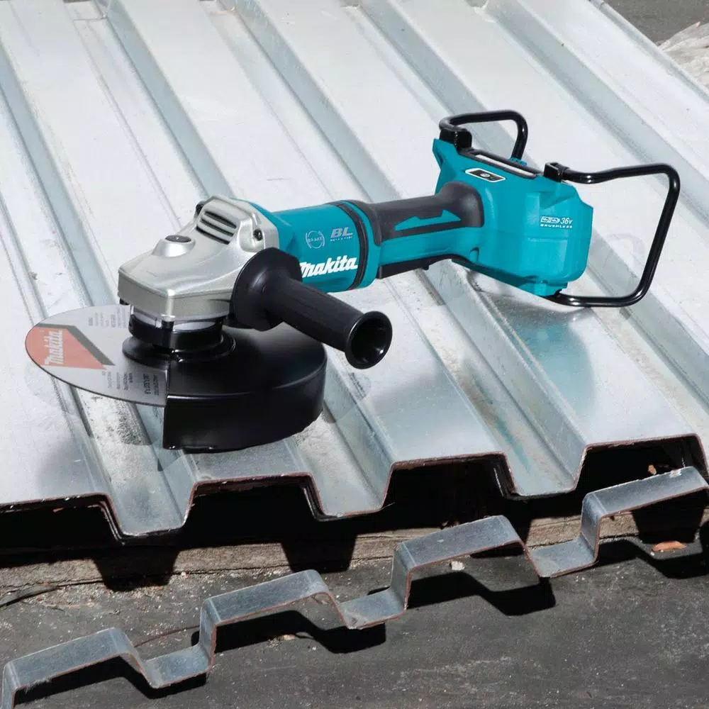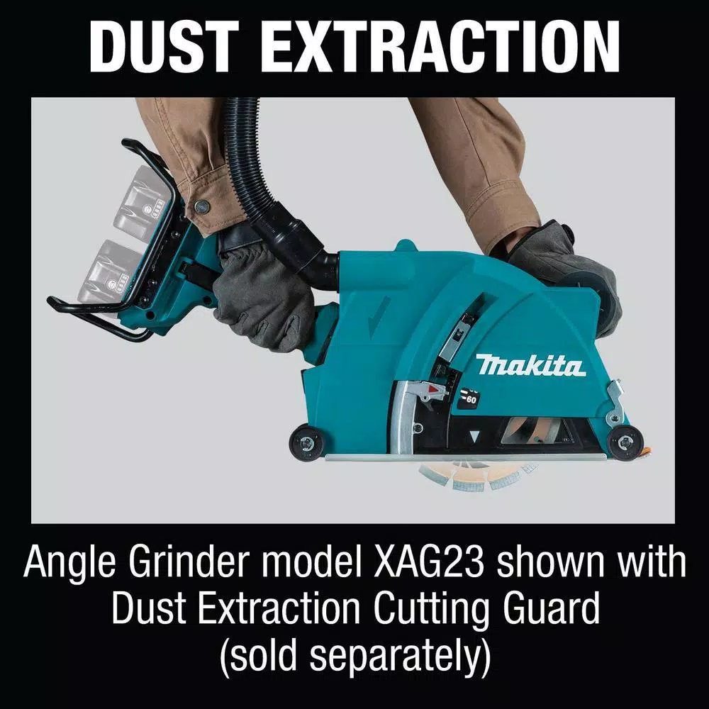 Makita delivers corded grinding performance without the cord with the 18-Volt X2 LXT Lithium-Ion (36-Volt) Brushless 9 in. Paddle Switch Cut-Off/Angle Grinder with Electric Brake and AWS (tool only, battery and charger sold separately). Itโs powered by a Makita brushless motor for longer run time, increased power and speed and longer tool life. for the most demanding applications, Makitas exclusive Automatic Speed Change technology automatically adjusts speed and torque during operation for optimal performance. The XAG23ZU1 is ideal for grinding and cutting a wide range of materials including tile, concrete, pipe, conduit and more. for improved efficiency, its equipped with Auto-Start Wireless System (AWS) technology. AWS utilizes Bluetooth technology for wireless communication between the tool and dust extractor (sold separately). When the trigger is engaged, the AWS-equipped dust extractor powers-up. When the trigger is released, the dust extractor powers-down. AWS is intelligent communication that eliminates cords and excessive noise since the dust extractor runs only when the tool is running. Additional features include the BL Brushless Motor, Active Feedback-Sensing Technology (AFT) and an electric brake that stops the grinding or cut-off wheel in 2 seconds or less.