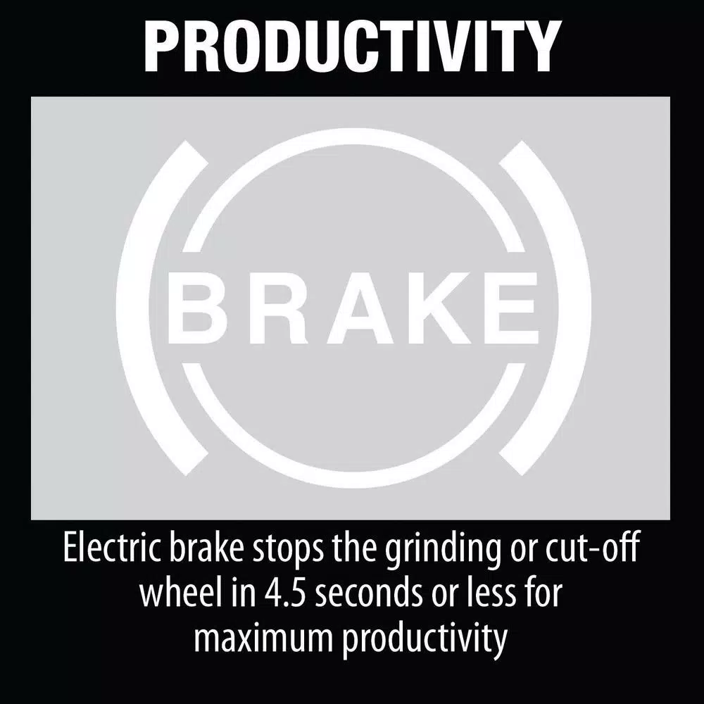 - Electric brake stops the grinding or cut-off wheel in 4.5 seconds or less for maximum productivity
