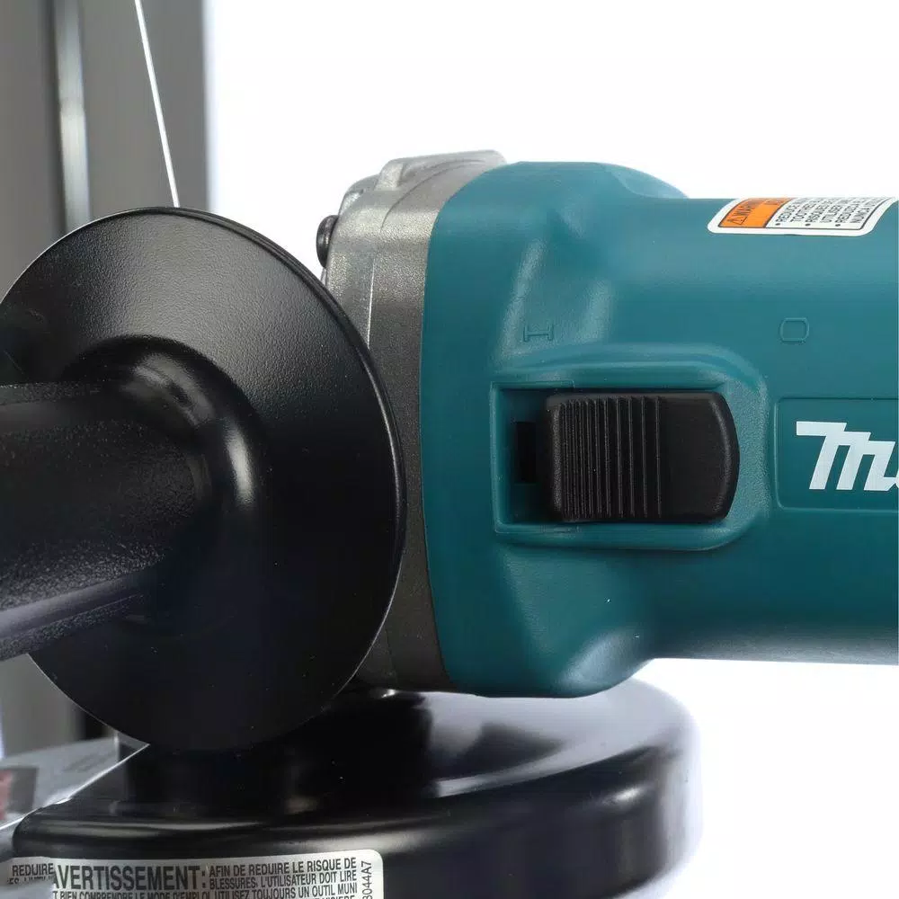 The Makita 4-1/2 in. Angle Grinder has a labyrinth construction that seals and protects the motor and bearings from dust and debris for a long-life, with an additional, protective zigzag varnish that seals the motor from contaminants by forming a barrier under rotation. This UL-listed grinder provides high-output power with its 7.5 Amp motor that maintains a 11,000 RPM speed to produce excellent grinding with a 2-1/2 in. small-circumference, barrel-grip handle for added comfort. All ball-bearing design and metal gear housing provide durability.