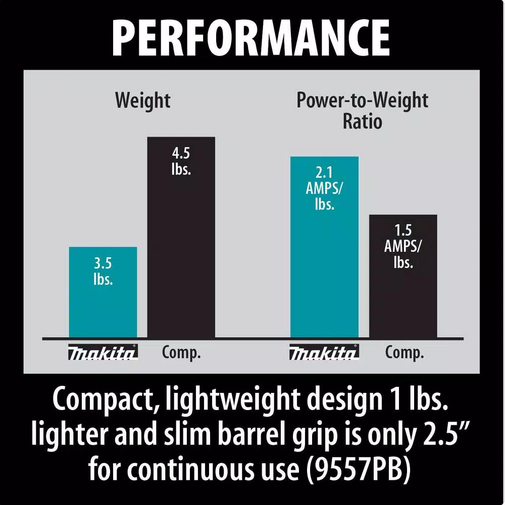 - 7.5 Amp motor delivers 11,000 RPM for high output power in a more compact tool (only 4.5 lbs.)