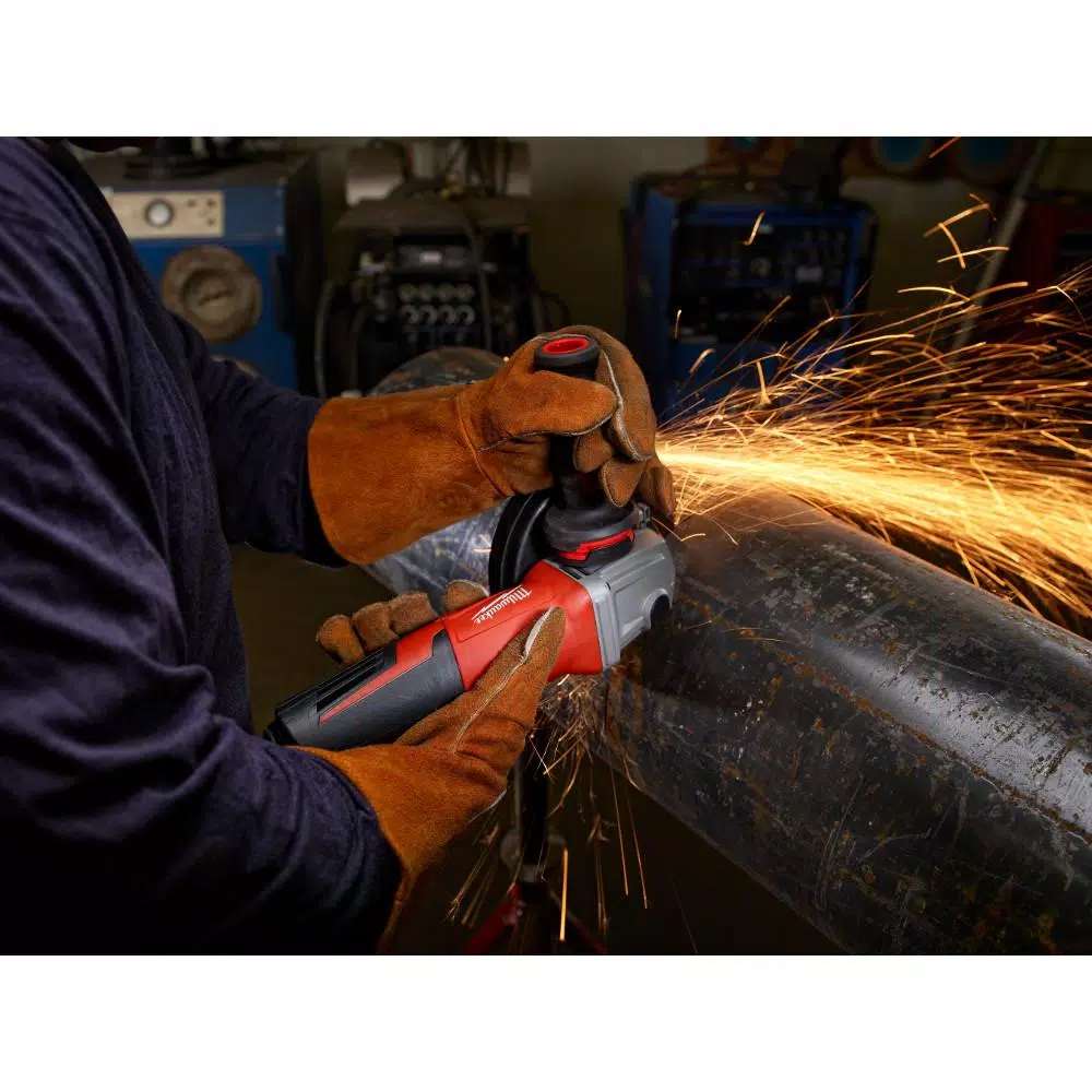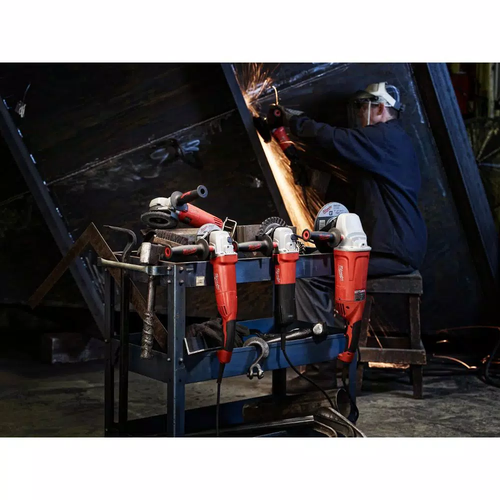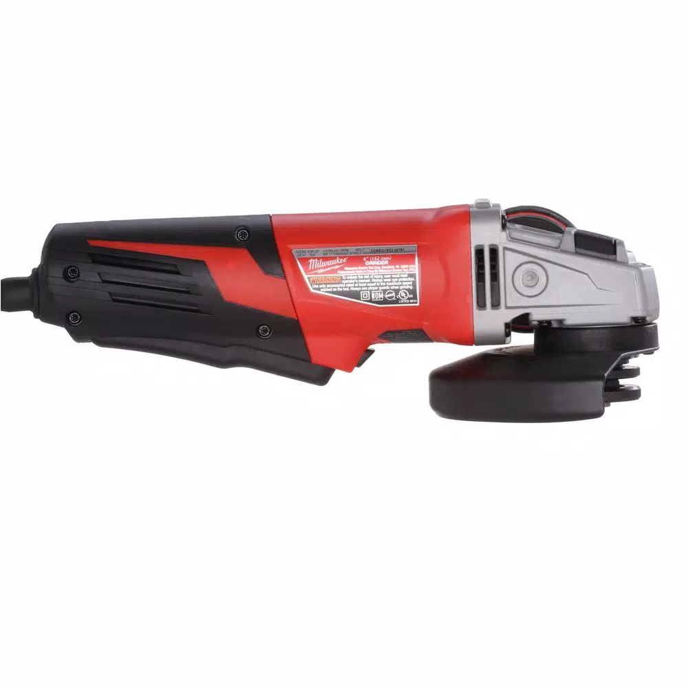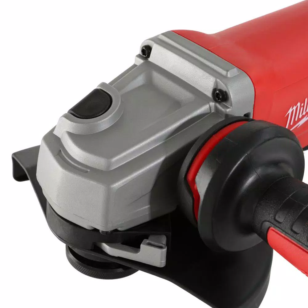 The 13 Amp 6 in. Small Angle Grinder (Paddle, No-Lock) delivers up to 30% more durability and power than the competition. With a 2,100 MWO motor that powers through the toughest jobs, the 6161-31 is the perfect match for industrial users. Milwaukee’s Electronic Advantage includes Overload Protection to maximize motor life, an Electronic Clutch that extends tool life and helps prevent bind-up, Line Lock-Out that prevents automatic start-up after power loss and Soft Start. Constant Power Technology enables the grinder to maintain speed under load for unmatched performance and productivity. Featuring a 100% tool-free design, this Grinder allows the user to change all accessories, including hub bed product, without a wrench. In addition, the tool-free, burst resistant, adjustable guard allows users to make quick guard installations and adjustments.