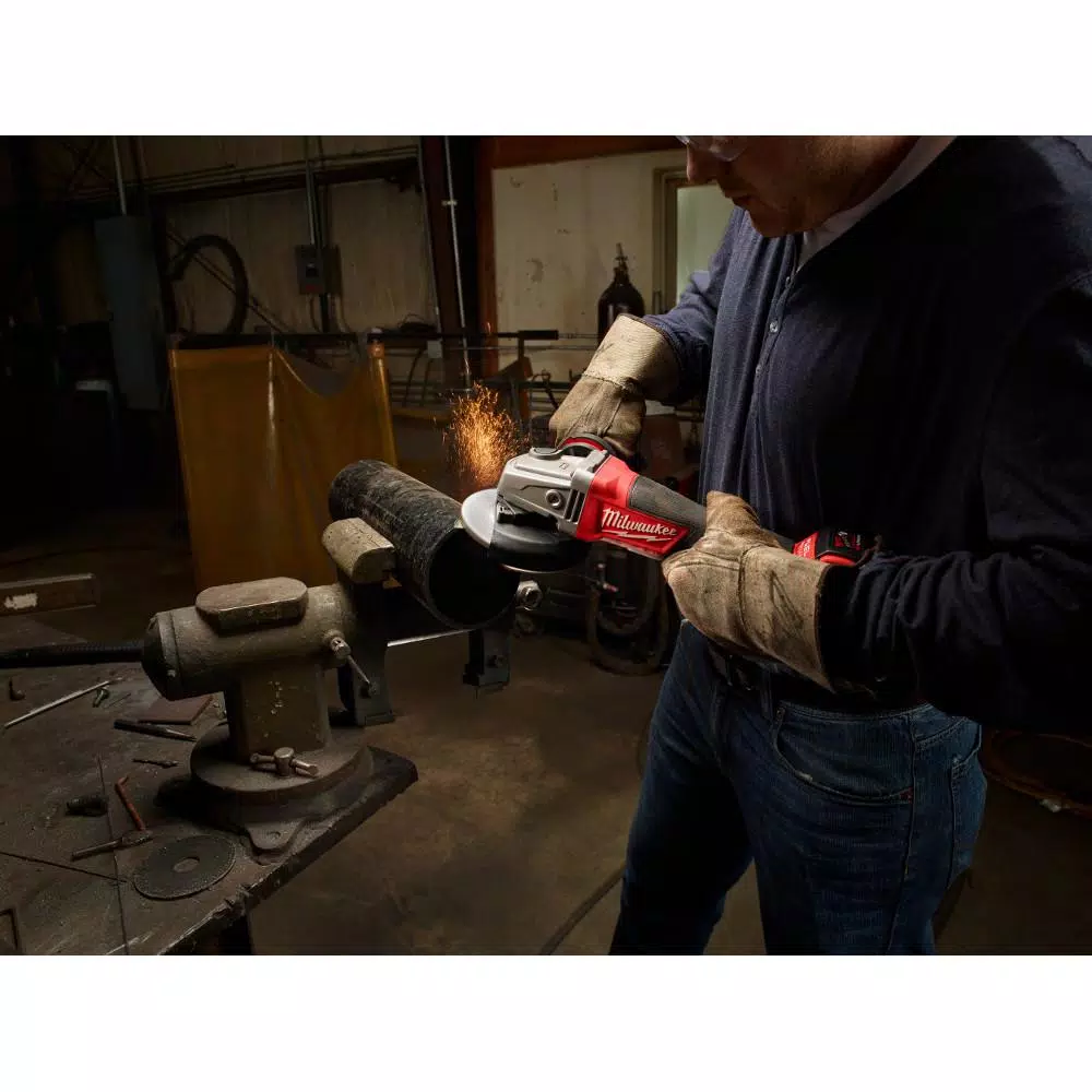 The worldβs first cordless grinder delivers the power of a corded grinder with up to 2X more run time and up to 10X longer motor life. The M18 FUEL 4-1/2 in./5 in. Grinder supplies maximum sustained power to complete the toughest grinding, surface preparation and cutting applications. The POWERSTATE Brushless Motor provides up to 10X longer motor life and lower cost of ownership. The M18 REDLITHIUM HIGH DEMAND 9.0 Battery Pack delivers up to 5X more run-time, 35% more power, and runs 60% cooler than standard 18-Volt lithium-ion batteries. It maintains full power and runs substantially cooler through heavy applications, allowing users to push their cordless tools harder and longer than ever before. The M18 REDLITHIUM HIGH DEMAND 9.0 battery is fully compatible with 175+ M18 tools. The grinder features REDLINK PLUS Intelligence, the most advanced system of cordless power-tool electronics, for maximum performance. The 18-Volt lithium-ion grinderβs thin body design gives it optimized balance to rest easily in your hands. Tool-free accessory changes and guard adjustments mean less downtime during work. The grinder is built with the same tool body, gearing system and anti-vibration side handle as Milwaukeeβs legendary high-performance corded grinders for maximum durability on the job.