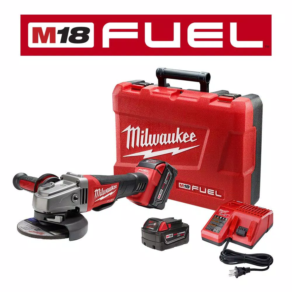 - Includes: 1 M18 fuel 4-1/2 in. / 5 in. grinder, paddle switch no-lock kit (2780-22), 2 M18 REDLITHIUM XC5.0 extended capacity battery pack (48-11-1850), 1 M18 and M12 multi-voltage charger (48-59-1812), 1 carrying case