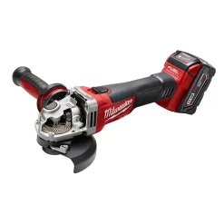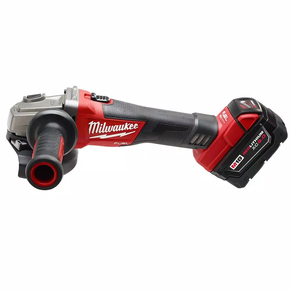 Power To Grind: Worldโs first cordless grinder with corded performance. Utilizing a POWERSTATE Brushless Motor, the M18 FUEL 4-1/2 in./5 in. Grinder, Paddle Switch No-Lock, delivers maximum sustained power to complete the toughest grinding, surface prep and cutting applications while providing a lower cost of ownership with up to 10X longer motor life. REDLITHIUM XC5.0 Battery Technology provides superior pack construction, electronics, and performance deliver 2X more run-time and more work over pack life than any battery on the market. REDLINK PLUS Intelligence has the most advanced system of cordless power tool electronics, providing optimized performance, electronic clutch, and overload protection using total system communication between tool, battery and charger. The thin body design delivers optimized balance to rest easily in the users hands. 100% tool-free-tool โ No wrench, No Screwdriver, No problem: Tool-free accessory change to easily change all accessories without a wrench and a toll-free adjustable guard for quick guard installations and adjustments. The M18 FUEL 4-1/2 in./5 in. Grinder, Paddle Switch No-Lock proves corded durability in a cordless tool by utilizing the same metal housing, Gearing system, guards, flanges, and anti-vibration side handles as legendary high performance corded grinders.