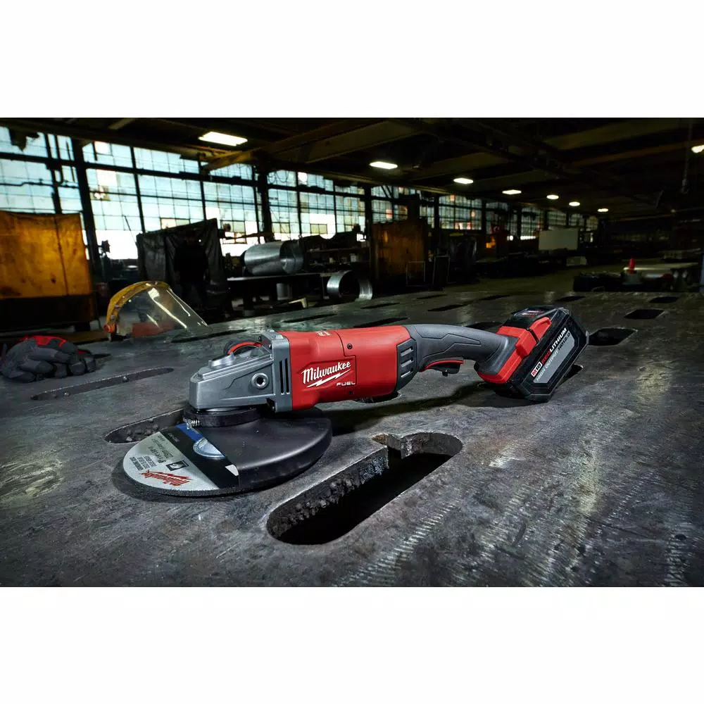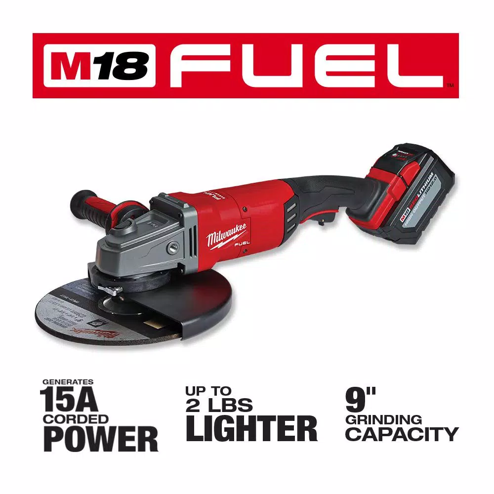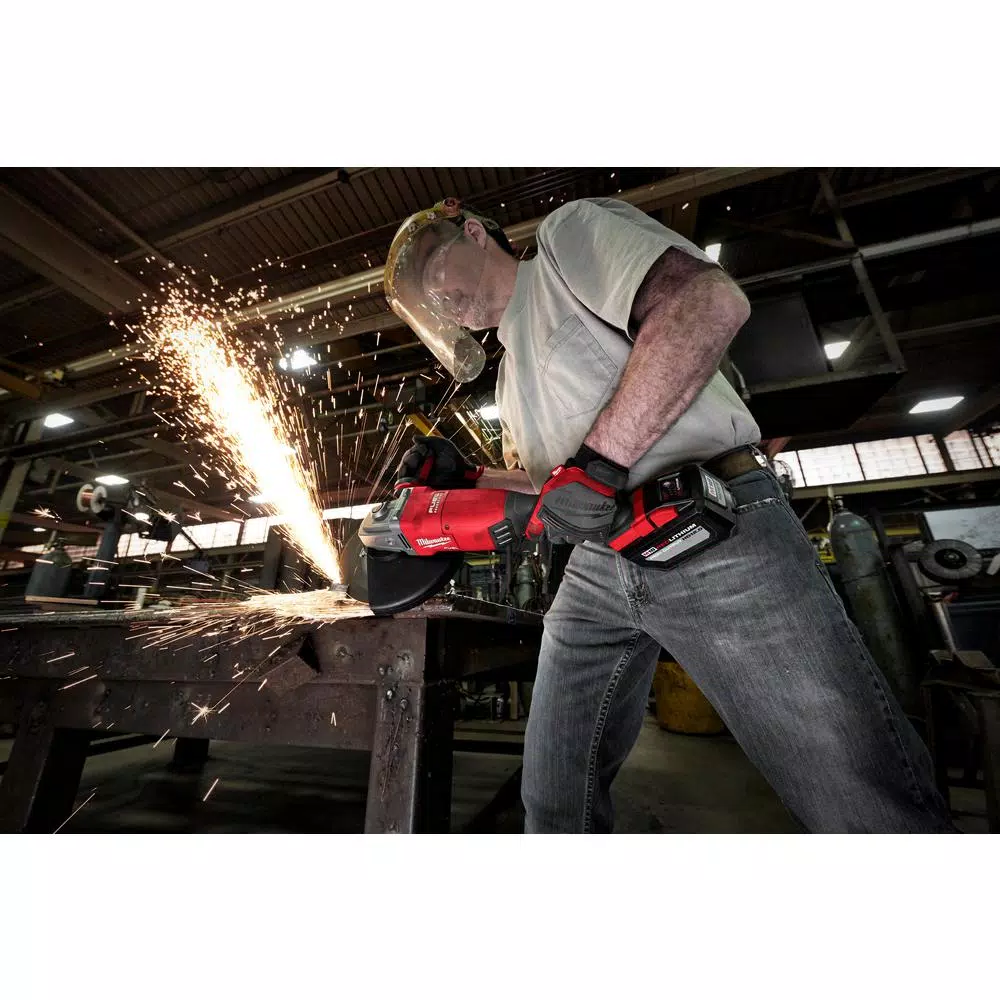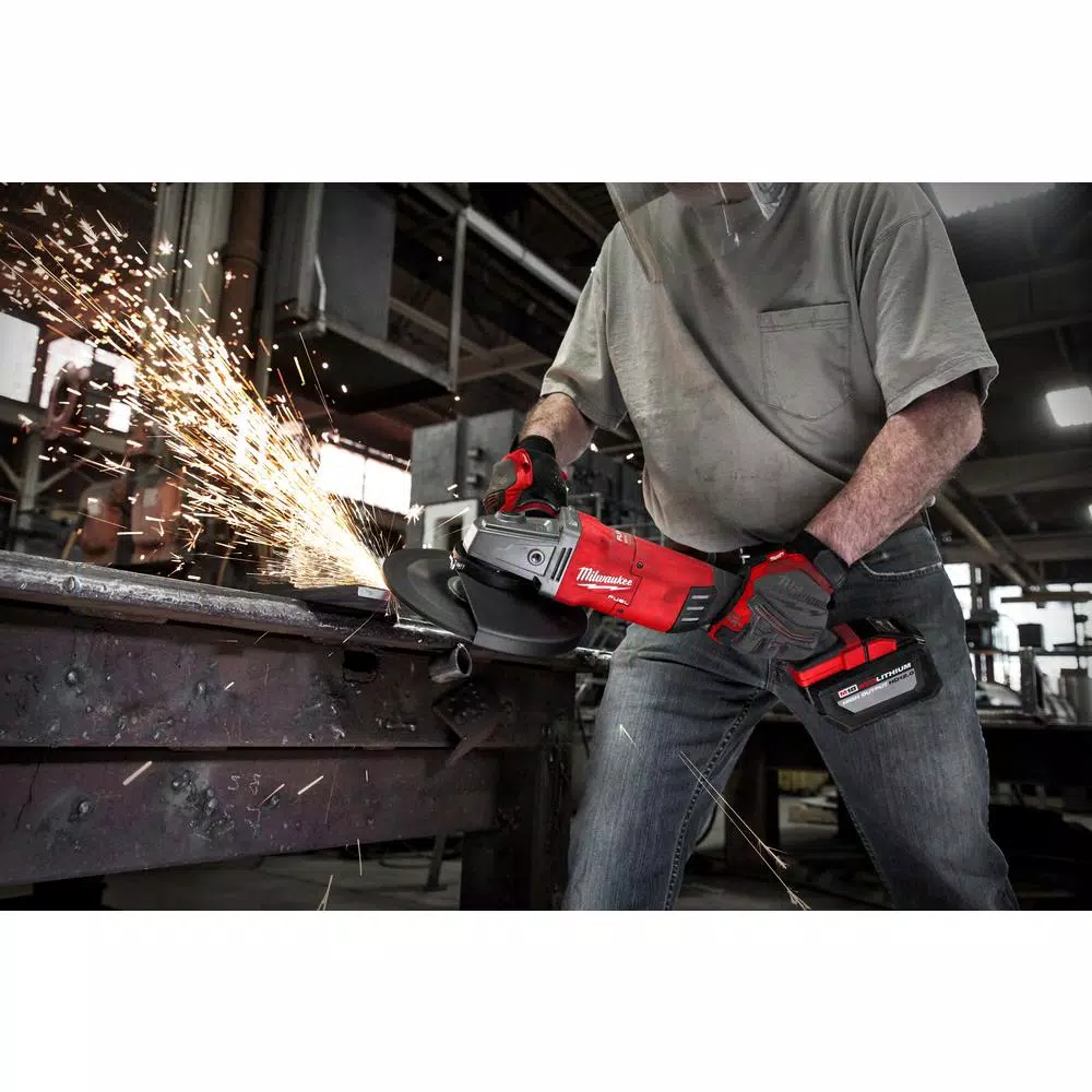 The Milwaukee M18 FUEL 7 / 9 in. Large Angle Grinder is the world’s first 18-Volt LAG capable of delivering the power of a 15Amp corded LAG. It is up to 2 lb. lighter than other models and has a 9” grinding capacity. Its high performance, advanced ergonomics & legendary durability ensures this grinder can tackle the toughest grinding, surface preparation, and cutting applications with any 7 / 9 in. accessory. The POWERSTATE Brushless Motor was purposely built for the M18 FUEL 7 / 9 in. Large Angle Grinder to provide the power and performance of a 15Amp corded large angle grinder. Built-in REDLINK PLUS Intelligence ensures optimal tool performance and provides overload protection to prevent damage to the tool and battery during heavy applications while still maintaining compatibility across the entire M18 System. The REDLITHIUM High Output HD12.0 Battery Pack provides 50% more power and runs 50% cooler versus standard REDLITHIUM HD packs. Superior pack construction provides the industry’s best protection against jobsite conditions. In addition to the grinder, this kit comes with two REDLITHIUM High Output HD12.0 battery packs (48-11-1812), one M18/M12 multi-voltage rapid charger (48-59-1808), one 9 in. T27 guard, one dust vent clip, one FIXTEC nut, one backing flange, one spanner wrench, one anti-vibration handle, and a durable contractor bag.