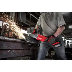 The M18 FUEL 7 in./9 in. Large Angle Grinder is the world ft. s first 18v LAG generating the power of a 15 Amp corded large angle grinder, is up to 2 lbs. lighter and has 9 in. grinding capacity. Providing high performance, advanced ergonomics and legendary durability, this grinder is designed to complete the toughest grinding, surface preparation and cutting applications with any 7 in. to 9 in. accessory. The POWERSTATE Brushless Motor provides 6,600 RPM and higher speeds under load for corded grinding/cutting performance. REDLINK PLUS intelligence ensures maximum performance and protection from overload, overheating and over discharge. The M18 REDLITHIUM HIGH OUTPUT HD12.0 battery delivers un-match run-time in all applications. Tool-free accessory changes using the FIXTEC nut and guard adjustments mean less downtime during work.