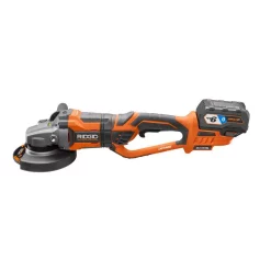 RIDGID introduces the 18-Volt OCTANE Cordless Brushless 7 in. Dual Angle Grinder Kit with (1) OCTANE Bluetooth 3.0 Ah Battery and Charger. The OCTANE Brushless 7 in. Dual Angle Grinder delivers unmatched performance in a cordless package. Run the grinder off 1 or 2 OCTANE batteries for optimal performance, or 2 non-OCTANE batteries. OCTANE tools utilize high performance brushless motors for increased performance. State of the art OCTANE electronics are built to handle maximum power from OCTANE batteries. The battery in this kit offers 2x more runtime when compared to standard 1.5 Ah lithium-ion. With Bluetooth Technology, the jobsite is opened up to many features that will increase productivity throughout the work day. While providing increased performance with all RIDGID 18-Volt tools, OCTANE batteries provide maximum performance when paired with OCTANE tools for high demand applications. The 18-Volt Charger is compatible with all RIDGID Batteries. With registration, this tool is backed by the Industryโs Only Lifetime Service Agreement, and includes a grinder wheel, a spanner wrench, an auxiliary handle, a 3.0 Ah OCTANE Battery, an 18-Volt Charger, and an operatorโs manual.
