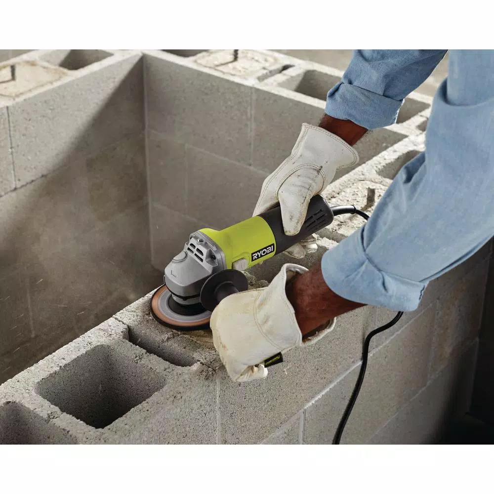 RYOBI introduces the 5.5 Amp 4-1/2 in. Angle Grinder. This grinder uses a powerful 120-Volt AC, 5.5 Amp motor that can generate 11,000 RPM to handle most grinding applications. The grinder’s handle adjusts for right- or left-handed with an additional possible vertical handle use while its spindle-locking button facilitates easy wheel changes. To learn more about RYOBI tools and check out RYOBI Nation. Backed by the RYOBI 3-Year Manufacturer’s Warranty, the 5.5 Amp 4-1/2 in. Angle Grinder includes a 4-1/2 in. metal grinding wheel, wheel guard, side handle, disc flange, flange nut, wrench, and an operator’s manual.