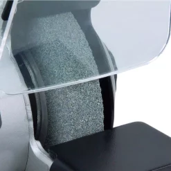 - Heavy-duty aluminum base with adjustable tool rests, eye shields and spark guides