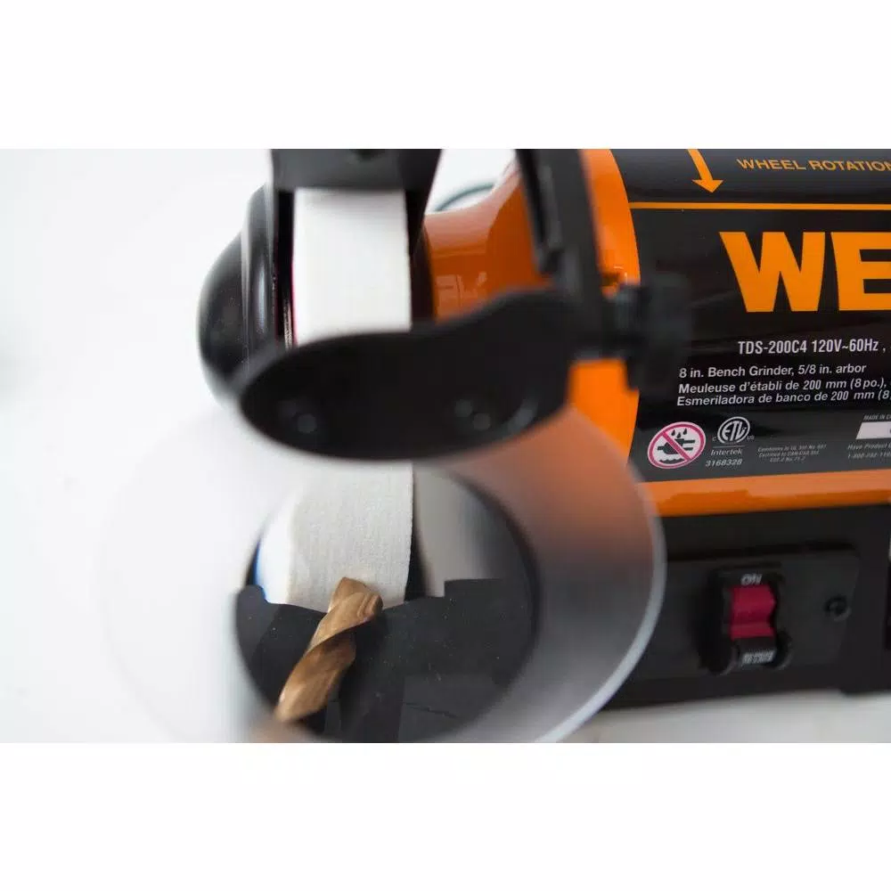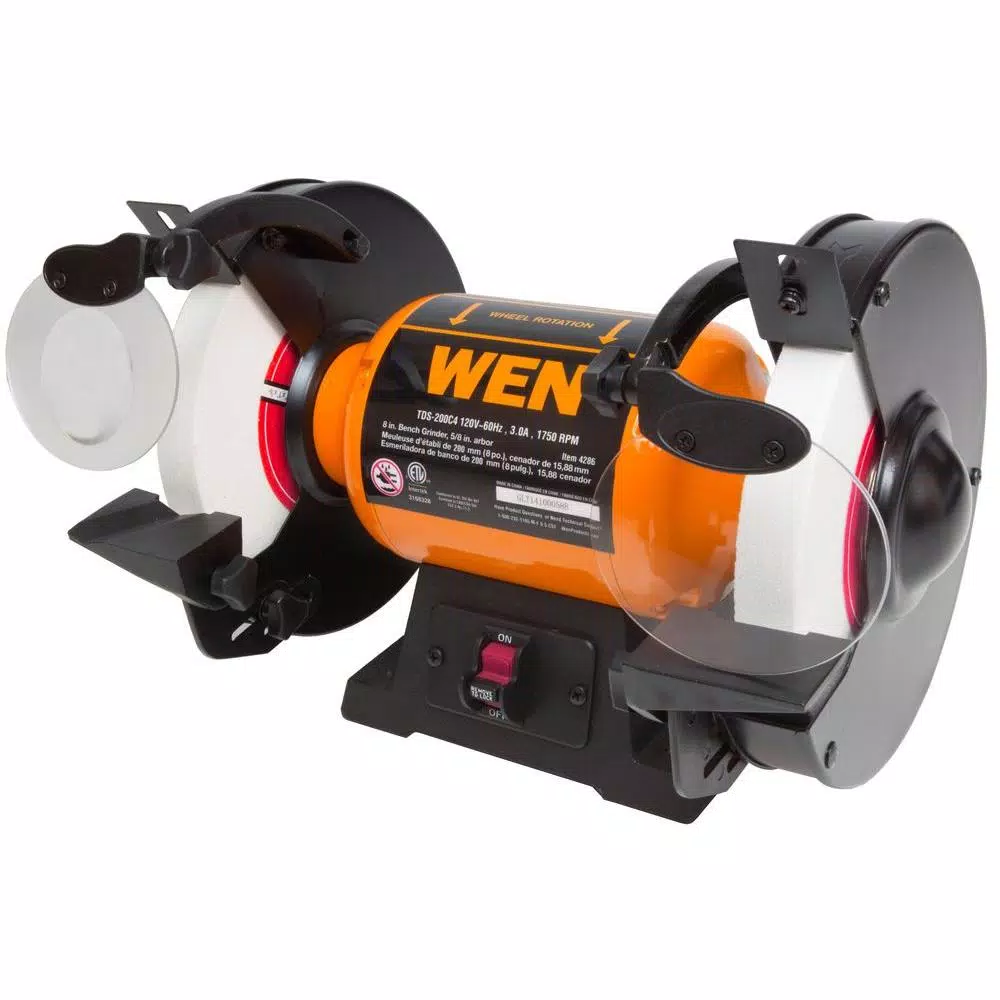 From deburring ragged edges to cleaning objects to sharpening blades, the WEN 8 in. Slow-Speed Bench Grinder is the ideal companion for any workshop. These machines allow for simple resuscitation of dull blades, scissors, screwdrivers and more. Compact yet powerful, the WEN 8 in. Slow-Speed Bench Grinder provides reliability even in the face of the most difficult tasks. Our package includes (2) 8 in. 1 in. wheels: a 60-grit wheel for material removal and general purpose grinding and a fine 120-grit wheel for blade sharpening and surface finishing. With our quiet 3 Amp motor, expect quick startups, smooth performance and steady speeds of 1750 RPM. This slow speed is better for sharpening edges with a nice smooth finish when compared with faster RPM grinders. Built with you in mind, our design makes wheel guard removal simple for easy wheel changes. The included eye guards can adjust to prevent them from interfering with your project. Also, the 1 in. thickness of each grinding wheel provides a large surface area for increased quickness and accuracy. Of course, as with all WEN Products, our 8 in. Slow-Speed Bench Grinder is covered with a 2-year warranty, a friendly and knowledgeable customer service hotline and a national service network. No need to waste any more money on tools, knives or blades. Remember WEN.