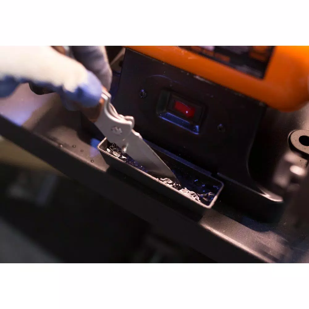- Onboard quenching tray helps cool down work pieces during long grinding sessions