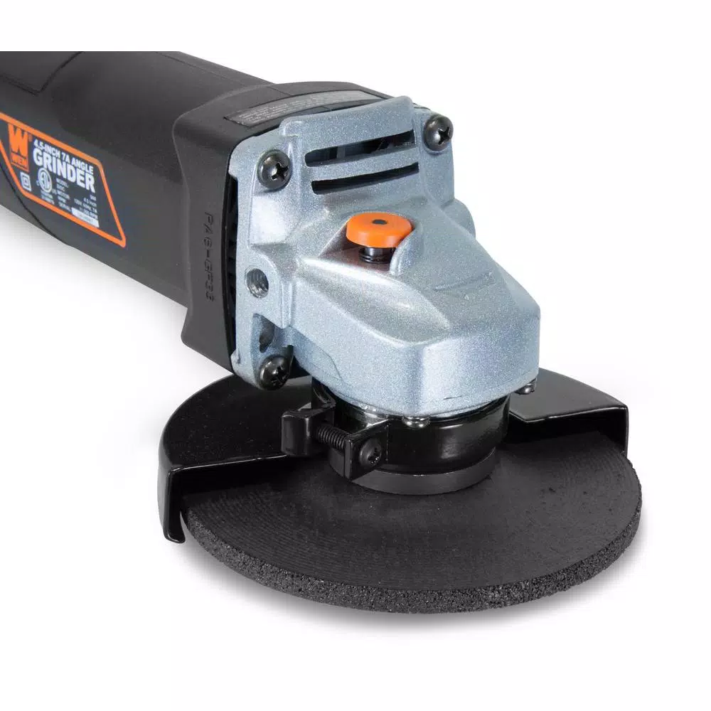 Remember when you could cut through even the hardest of metals? Let the sparks fly with the WEN 4-1/2 in. 7 Amp Angle Grinder. Our lightweight design weighs in at a mere 4.6 lbs. while the rubber-backed gripped creates a fatigue-free user experience during grinding operations. The lock-on side switch snaps into place to keep the machine running without constantly holding your thumb down on the trigger. The reversible handle can be attached to either the left or righthand side of the grinder depending on the operatorβs preference. The 7 Amp motor generates up to 11,000 RPM, powering through rust, chains, pipes and more. This package also includes 1 arbor adapter to allow for both 5/8 in. and 7/8 in. grinding and cutting wheels, an adjustable blade guard and a 4.5 in. grinding disc. And, because itβs a WEN product, your 4-1/2 in. 7 Amp Angle Grinder comes backed by a two-year warranty, a nationwide network of skilled service technicians and a friendly customer help line all to make sure you remember WEN.