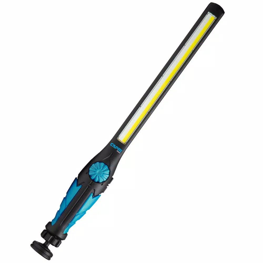 The Capri Tools Ultra-Thin 620 Lumens Work Light with cutting edge COB LED technology produces incredibly bright light at 620 Lumens over 120Β° wide beam angle. Its 10 mm ultra-thin design lets you easily light those tough-to-light spots. It features dual array LED which produces cool white light for illumination and UV light for leak detection. Convenient rotary dimmer switch lets you freely adjust light output and turn the work light on and off. Handsfree magnetic base secures the work light to any flat steel surface in any orientation. The base also swivels 360Β° for maximum handsfree coverage. The work light has an internal rechargeable UL Listed LI-ion battery that gives you 3-hours of battery life at maximum brightness. It is conveniently rechargeable via MicroUSB and a MicroUSB charger is included.