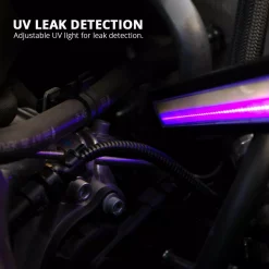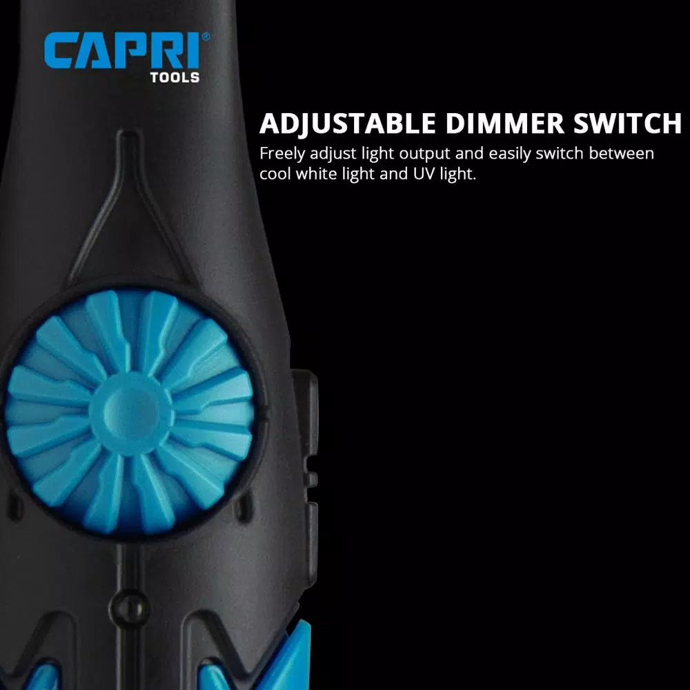 - Dual array COB LED produces cool white light for illumination and UV light for leak detection, adjust light output freely with the dimmer switch