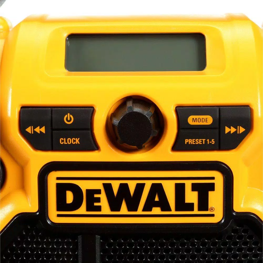 The DEWALT Compact Worksite Radio is durable enough to withstand rough job site conditions and can be powered either by an AC power cord or a DEWALT 18-Volt or 12-Volt/20-Volt Max battery pack. This rugged unit features AM, FM and an auxiliary input for connecting to a CD player, mp3 player, satellite receiver or another digital audio device. Even better, the integrated USB power port lets you charge your phone or other device for added convenience on the job.
