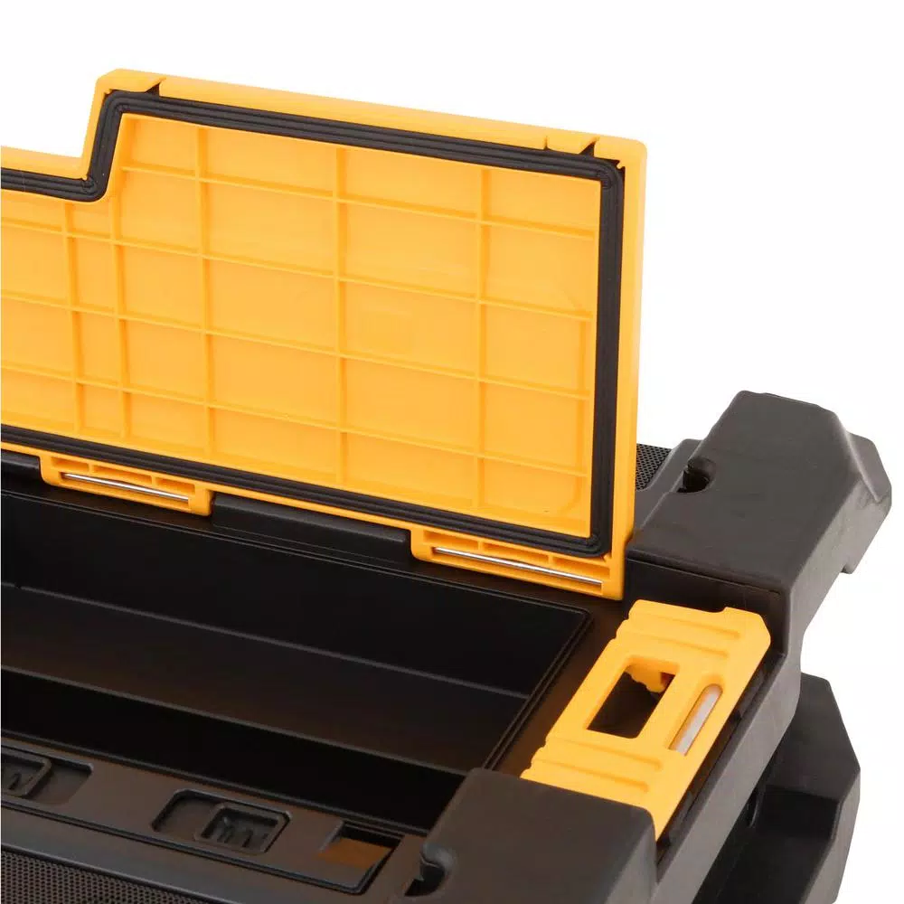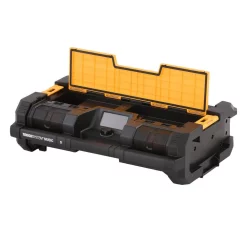 The DEWALT TOUGHSYSTEM Music with Charger brings music to your DEWALT TOUGHSYSTEM Cart. This premium music system features a digital sound processor for sound optimization, high power and high efficiency. Designed to run off either a battery or AC power, this unit is TOUGHSYSTEM compatible, durable and stackable for ultimate convenience.