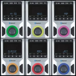 - Menu controls to set FM mono/stereo, clock settings, volume and snooze