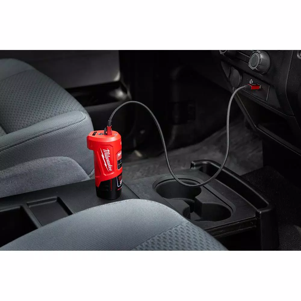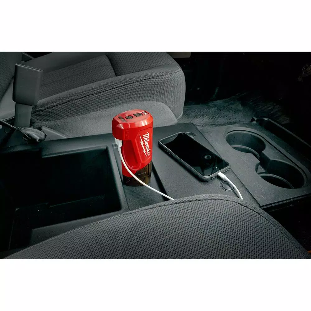 Advanced lighting technology makes the M12 LED Lantern/Flood Light a superb choice. It features a 180ยฐ โ 360ยฐ adjustable beam design to allow users to select between area lighting and task lighting for maximum versatility. With over 400 Lumens, illuminating large work areas is easy. As an added value to the user, the light also includes a high power 2.1 Amp USB port to charge tablets, smart phones, mp3 players and other electronic devices. With a rugged design and impact resistant lens, the new light is built to withstand abusive jobsite conditions. M12 Compact Charger and Power Source provides convenient, on-the-go charging for all M12 Batteries both on and off the jobsite. Using the included Jobsite Tough Micro-USB cable and 2.1 Amp Wall Plug, the Compact Charger expands the portability of all M12 products.