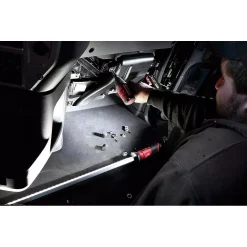 The Milwaukee M12 Underhood Light Shines Brighter, Grips Stronger, and Protects Longer. The LED underhood work light delivers 1350 Lumens of TRUEVIEW High Definition Output for full engine coverage and clarity. FINISHGUARD hooks resist wear, providing long-lasting protection against scratches to a vehicleβs finish. The LED light bar features 2x more gripping surface to help users get more contact for better positioning when mounting under hood, undercarriage or elsewhere. The under hood light bar can rotate, slide, remove and hang for added flexibility and versatility, perfect for mechanics working in automotive shops or fleet maintenance. The carrier extends 47 in.-78 in. to fit wide cars and trucks. The LED underhood light delivers up to 8 hours of runtime when powered by an M12 REDLITHIUM XC4.0 Battery Pack. This light is impact and chemical resistant, built to withstand the toughest environments. The high-quality LEDs never need to be replaced and are backed by a limited lifetime warranty.