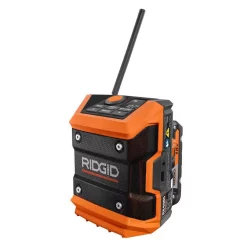 RIDGID introduces the 18-Volt Cordless Compact Bluetooth Radio with Radio App, 1.5 Ah Battery, and Charger. This radio is the second radio to use the RIDGID Radio App. The Mini Bluetooth Radio also features a USB charging port for smartphones and other devices and an Aux-In connection making it MP3 player compatible. Backed by the Industry Leading Lifetime Service Agreement, the 18-Volt Mini Bluetooth Radio with Radio App includes an 18-Volt 1.5 Ah Compact Lithium-Ion Battery, an 18-Volt Charger, 2 AAA Batteries, and auxiliary cable, and an operatorโs manual.