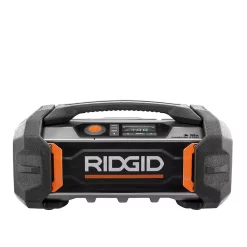 RIDGID introduces the 18-Volt Lithium-Ion Cordless Bluetooth Charging Radio (Tool Only). This radio now provides a charger for all RIDGID 18-Volt Batteries so you can complete any job while still rocking out. With the RIDGID Radio App, you can stream music wirelessly from your phone while charging it at the same time in the integrated USB port. With registration, this tool is backed by the Industryโs Only Lifetime Service Agreement. The 18-Volt Bluetooth Charging Radio includes two AAA batteries, an auxiliary cable, and an operatorโs manual. Battery and charger sold separately.