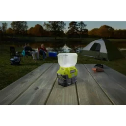 RYOBI introduces the 18-Volt ONE+ Cordless EVERCHARGE LED Area Light and Wall Mount Adaptor Charger with 2.0 Ah Battery and Charger Kit. This versatile light can illuminate workspaces with 360ยฐ of light output. With EVERCHARGE Technology, the battery charges and remains charged. The Auto-On during power outage mode is an innovative feature that allows the light to come on automatically during a power outage and remain on for 10 minutes to allow the user to find the light and get around. Delivering up to 400 Lumens of light output and over 24 hours of runtime on a RYOBI High Capacity LITHIUM+ Battery, this light wonโt leave you in the dark. Built-in USB charging port will keep your phone charged on the job. The folding metal handle provides easy storage and portability. The battery features lithium-ion battery cells, providing the user with up to 1.5X more runtime than Ni-Cd counterparts. The battery is engineered to deliver fade-free power for maximum performance. The 18-Volt ONE+ Dual Chemistry IntelliPort Charger is compatible with all RYOBI ONE+ batteries and features IntelliPort Technology to maximize the lifetime of your RYOBI batteries. Best of all, it is part of the RYOBI ONE+ System of over 175 Cordless Tools that all work on the same battery platform. Backed by the RYOBI 3-Year Manufacturerโs Warranty, this kit includes the LED Light, an EVERCHARGE Wall Mount Adaptor Charger, an 18-Volt ONE+ 2.0 Ah Lithium-Ion Battery, a Charger, and an operatorโs manual.