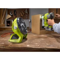 - Hybrid Portable Fan: Hybrid Portable Fan conveniently runs off RYOBI 18-Volt ONE+ battery or electric power with an extension cord
