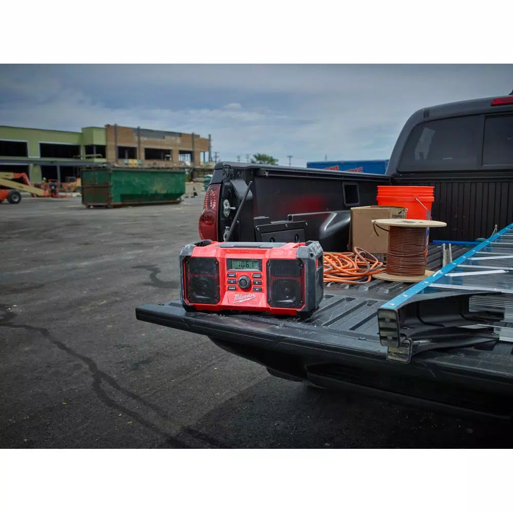 The Milwaukee M18 Jobsite Radio has loud clear sound, built for work. The worksite radio features a high-performance audio system, rugged design and is built to amplify and survive any job site users bring it on. Dual speakers and passive radiators combine to produce sharp highs, rich mids and deep bass at all volumes. Durable metal speaker grills and shock absorbing end caps protect the portable work radio from drops and other harmful job site conditions while integrated handles enable users to easily transport and store it. The cordless radio includes a digital processor featuring best-in-class reception and signal clarity as well as a 3.5 mm aux jack for wired playback. A weather-sealed auxiliary compartment protects the userβs connected devices and houses a 2.1 Amp USB charging port. The tough portable radio is powered by all M18 REDLITHIUM Batteries or A/C power. Milwaukee Inkzall Permanent Markers are optimized for jobsite conditions. The durable tip is designed to withstand writing on rough surfaces such as OSB, cinderblock and concrete and writes through dusty, wet or oily contamination.